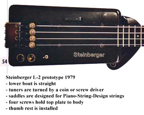 Per seguire questi requisiti Ned spogliò il basso della paletta spostando le meccaniche per l’intonazione ai piedi del ponte. Sebbene questo layout non fosse una vera novità, Steinberger ebbe il merito di essere il primo a brevettare e a realizzare uno strumento dotato di questa configurazione.