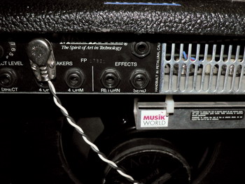 I controlli, nello specifico sono Gain (chiamato volume), Volume Master, Bass, Middle, Treble, Master, Reverb, Presence, tutti comuni ai due canali; un Lead Master che agisce come boost di volume solo su quest'ultimo canale, i cinque sliders dell'equalizzatore, un selettore di modalità per questo ed infine standby e power, oltre all'input per chitarra e il plug per lo switching dei canali. Sul retro troviamo invece tre plug per gli speaker, uno da 8 ohm nel quale è normalmente infilato il jack del cono interno, e due da 4 ohm dove è possibile collegare due speaker in parallelo (piccola precisazione, i due gruppi di uscite, da 4 e da 8 non vanno MAI usati assieme!), l'uscita slave (Direct) prelevata da un secondario del trasformatore d'uscita con un comodo volume, il loop effetti, la presa per un ulteriore switch che controlla l'equalizzatore e la presa fusibili.