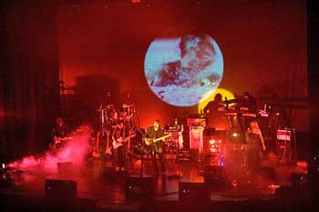 Sullo sfondo filmati floydiani, un grande impianto di luci, laser e fumarole di rito, il tutto chiaramente ben proporzionato alla dimensione del teatro che ha una capienza di sette/ ottocento posti a sedere con una platea ben raccolta e quattro ordini di palchetti.