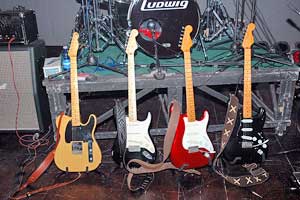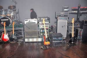 Belle le chitarre, bellissimi i nuovi ampli di Pier (uno bianco , credo la monocanale), naturalmente lui ne usa due…se lo può permettere ;) monocanale e x100 Modern (credo), un Hiwatt da 200 e tutto il resto Masotti varie…
