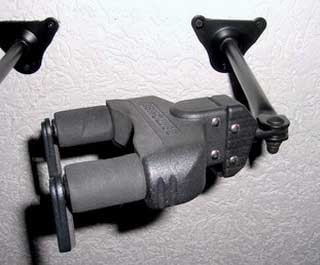 In termini di sicurezza mi sono fidato poiché più di uno (e già da anni) ne utilizza a centinaia per esporre chitarre e bassi di ogni tipo e valore. Ho quindi acquistato sette supporti della Hercules mod. GPS40WB a 12 € cadauno... non prima di aver "conquistato" parte di una parete di casa.