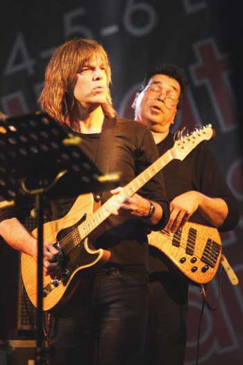 Insomma, uno partiva (Miller), cinque arrivavano (Mike Stern, Russel Ferrante, Jimmy Haslip, e gli altri due) e tutti quanti se la stavano spassando in allegria sotto lo sguardo divertito del direttore artistico del “Galliate Master Guitar” Graziano Genoni!