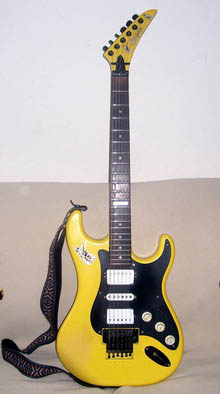 Kramer Jelly USA -'87 Completamente rifatta (comprata a 200mila lire distrutta) Ponte Floyd Rose Originale. P.U. Dimarzio Super Distortion Ponte (originale), fender strato bridge al centro, Gibson PAF 1959 reissue al manico